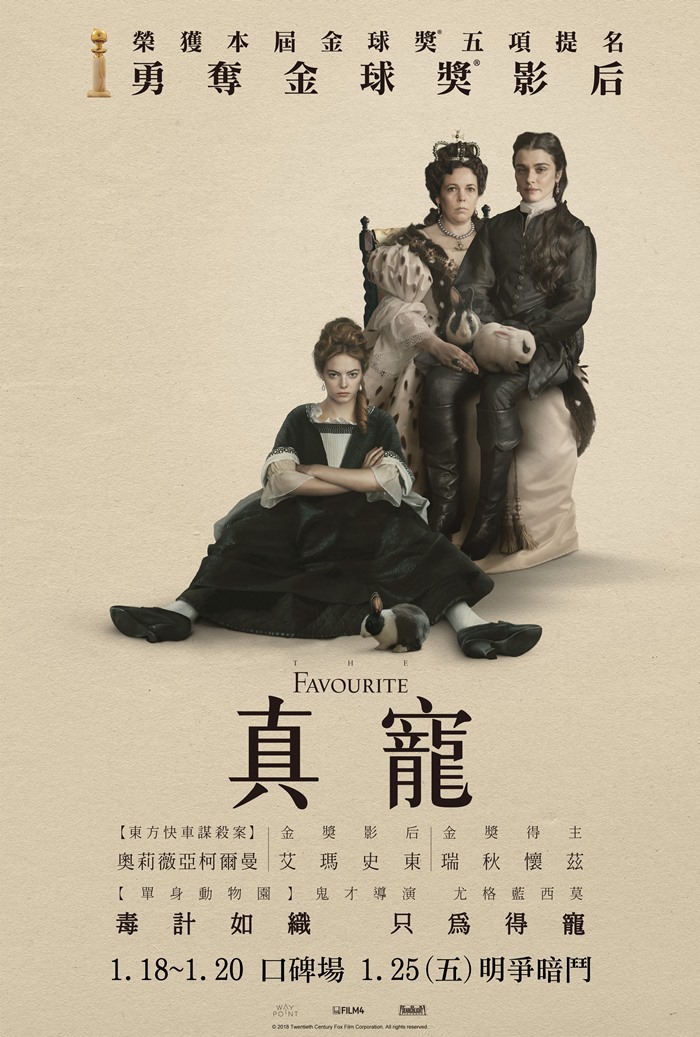 艾瑪史東(Emma Stone) 、 瑞秋懷茲(Rachel Weisz) 、 奧莉薇亞柯爾曼(Olivia Colman) 、 尼可拉斯霍特(Nicholas Hoult) 、 喬歐文(Joe Alwyn)